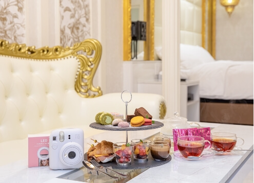 隠れ家のような客室でスイーツや
