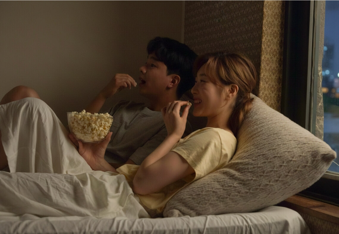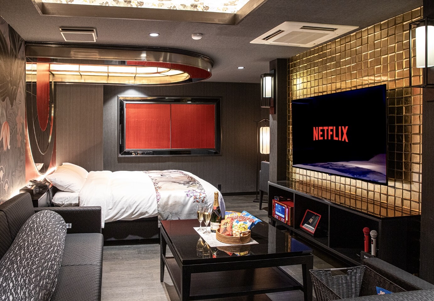 外に出なくても満たされる、ゆったりとしたホテル時間。大型モニターで映画を楽しんだり、Yogiboに身を委ねたり。
