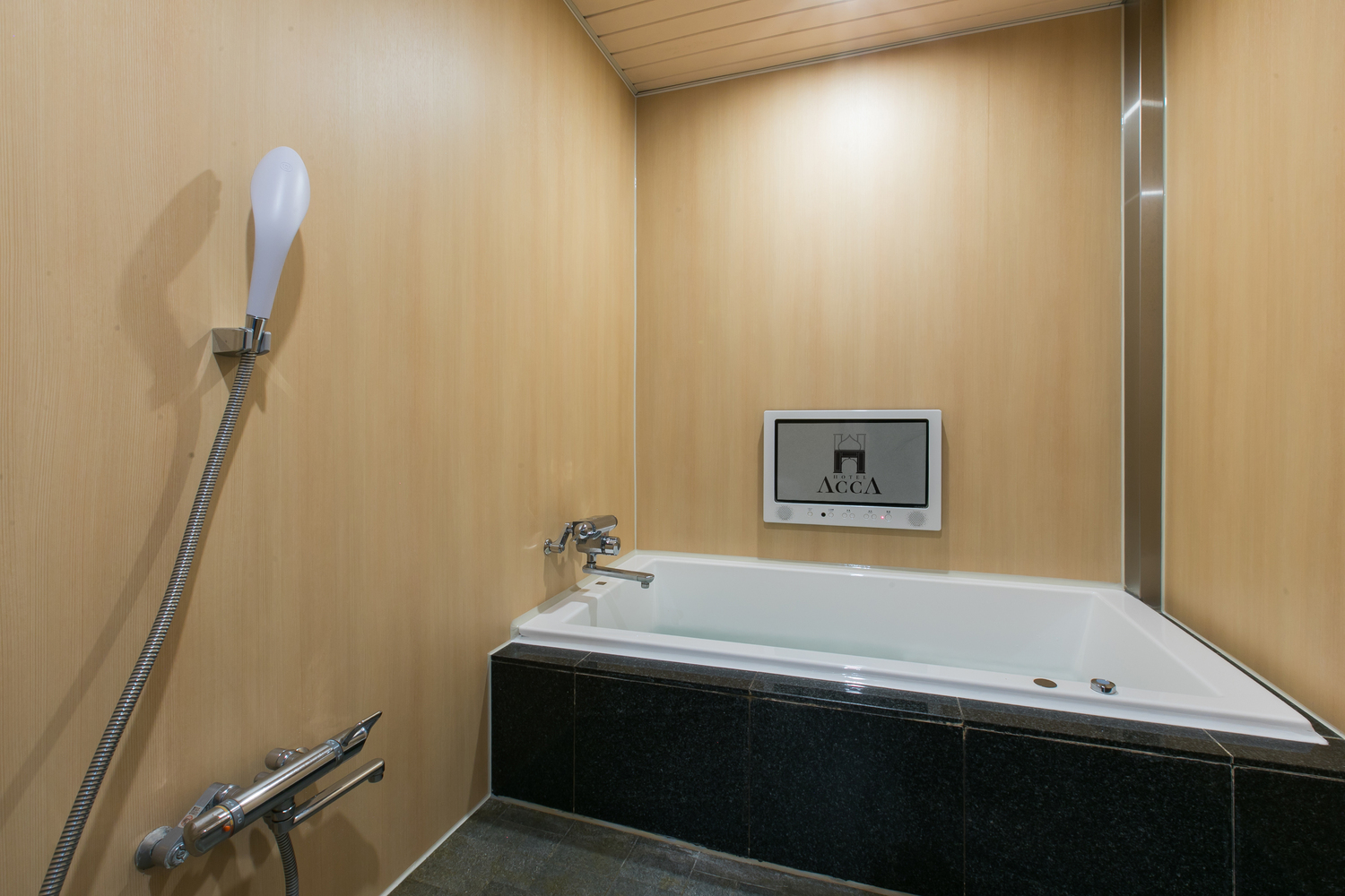 浴室テレビとジャグジー、頭皮や肌に優しいシャワーヘッドも完備。入浴中もTV鑑賞をお楽しみいただけます。 -