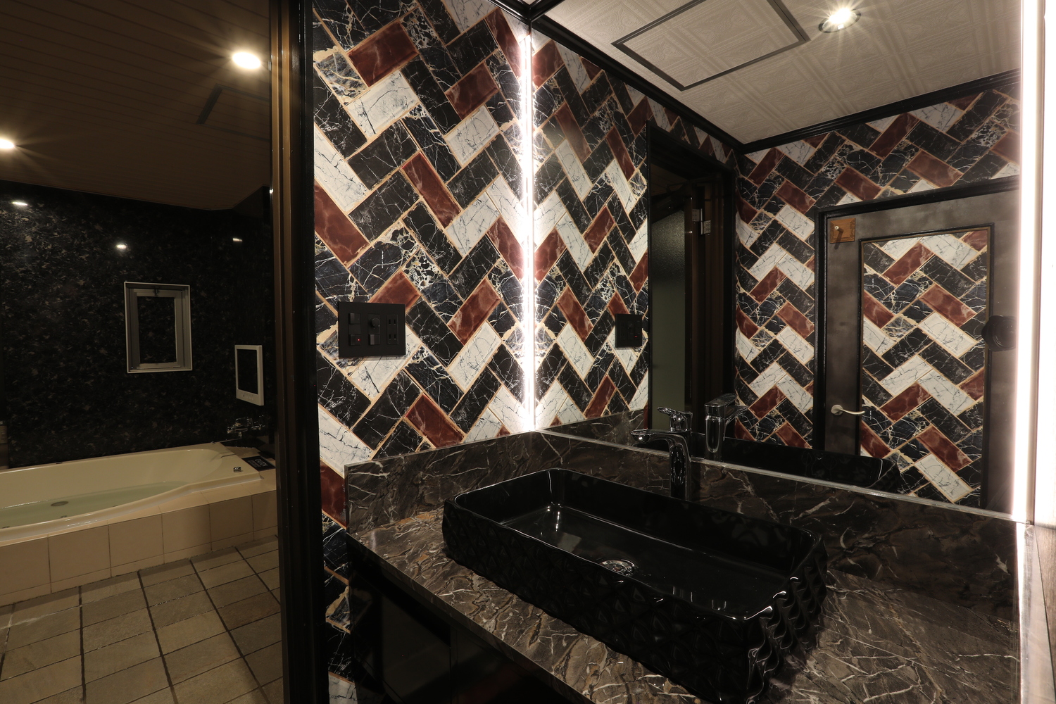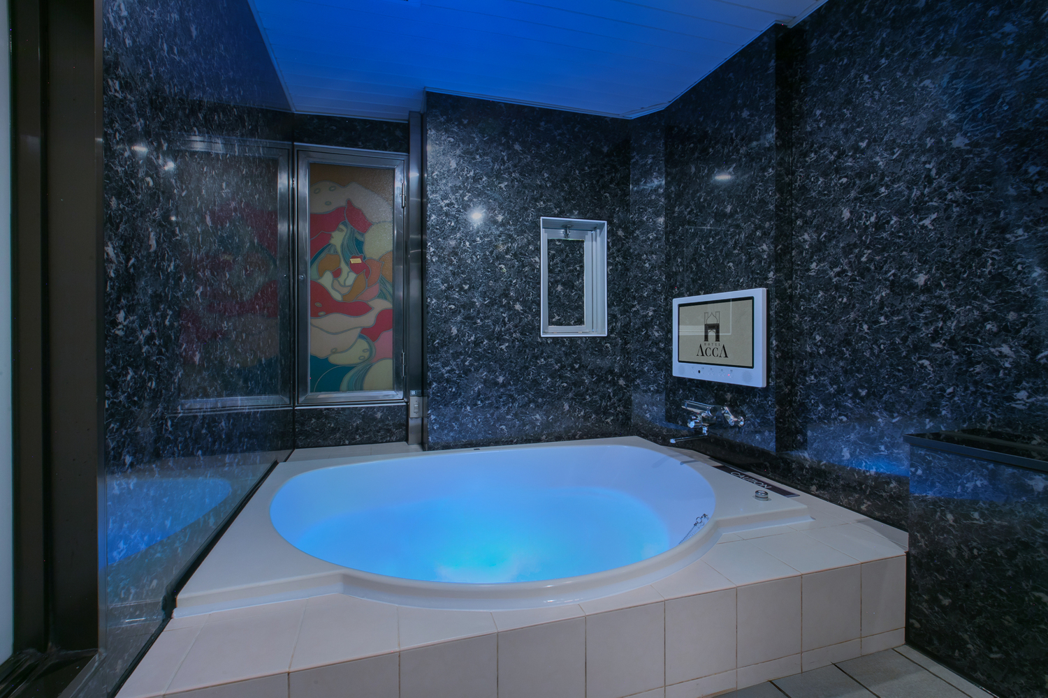 浴室テレビとジャグジー、頭皮や肌に優しいシャワーヘッドも完備。入浴中もTV鑑賞をお楽しみいただけます。 -