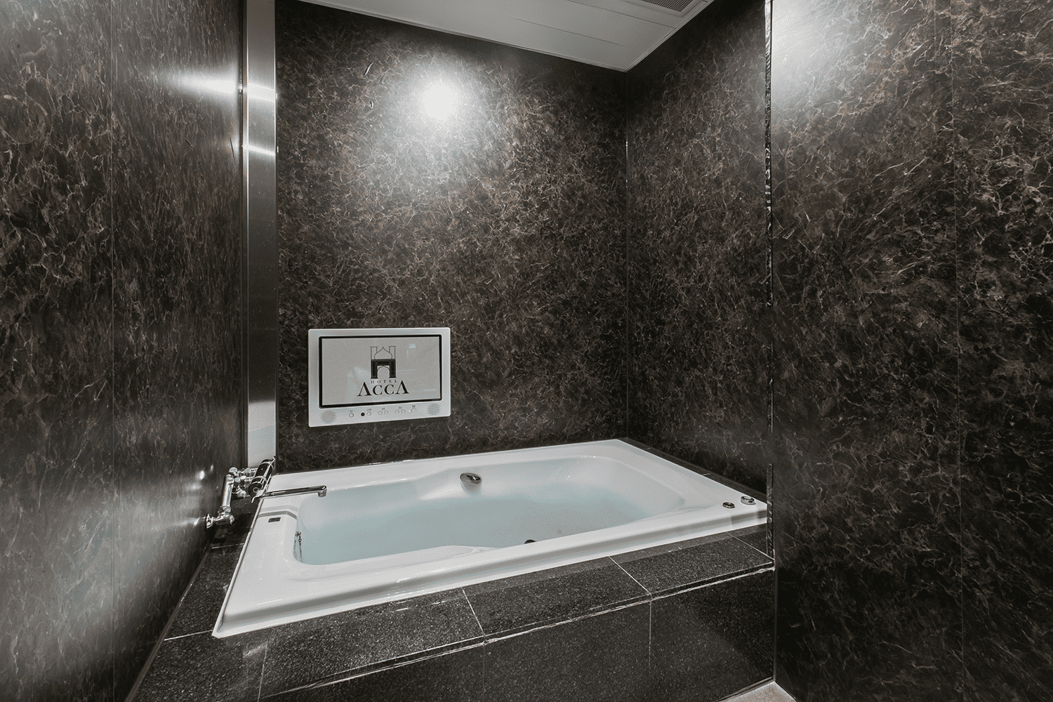 浴室テレビとジャグジー、頭皮や肌に優しいシャワーヘッドも完備。入浴中もTV鑑賞をお楽しみいただけます。 -