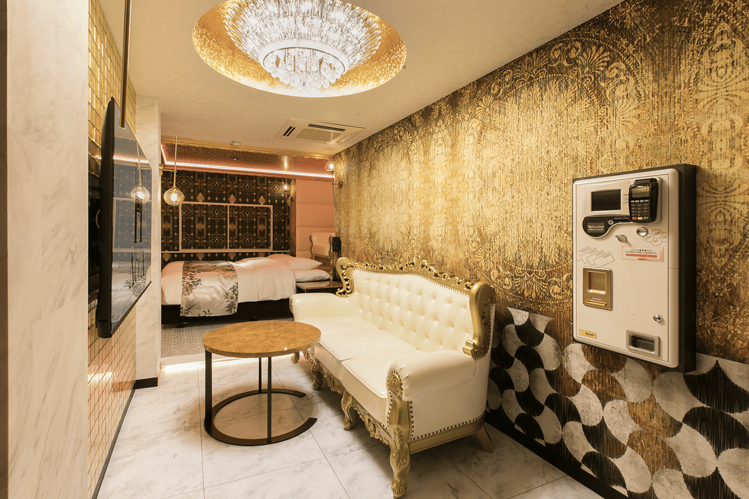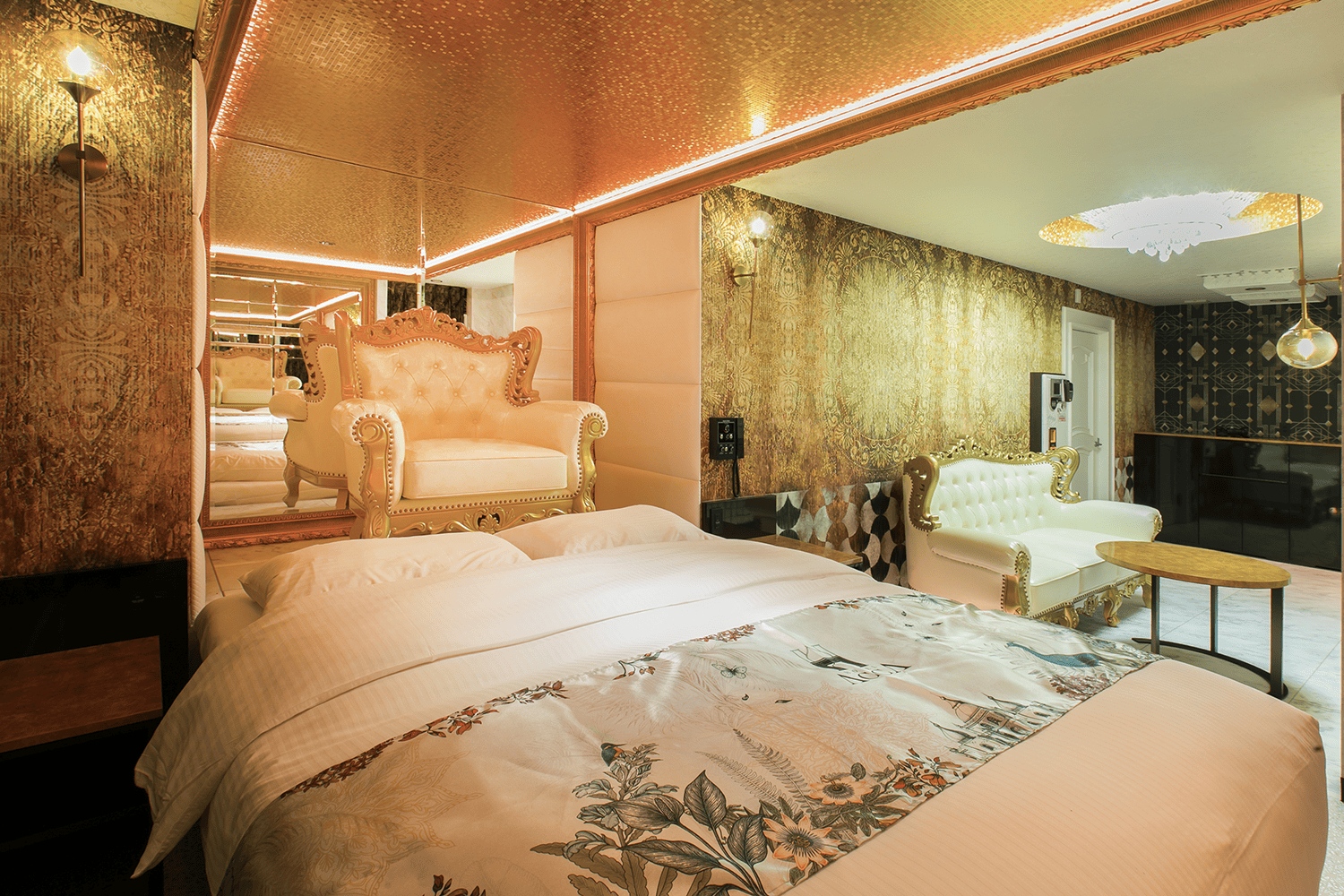 部屋番号12広さ33.35㎡収容人数大人2名ベッド数/ベッドサイズキングベッド(W2000xL2050 1台)部屋の特徴クレオパトラチェアー あり風呂・スパ内風呂(ユニットバス)※浴室テレビあり料金¥6,020(税込)〜喫煙有り -